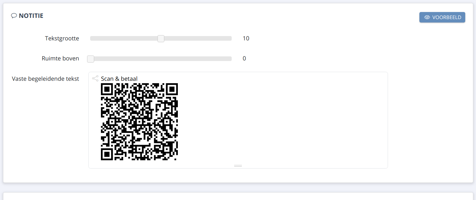 Wens je een QR-code toe te voegen zodat je klant rechtstreeks een betaling via Bancontact of Payconiq kan uitvoeren? Consulteer dan de hulppagina POM, Payconiq of Mollie.