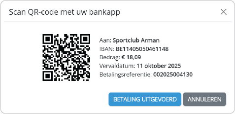 Betalen doe je vanaf nu rechtstreeks via EenvoudigFactureren! Klik gewoon op het paarse QR-code-icoon om de betaling te starten. Er opent automatisch een venster met de QR-code en alle betalingsgegevens zoals het bedrag, de IBAN en de vervaldatum. Scan de code met je bankapp, en alles wordt meteen ingevuld. Zo betaal je aankoopfacturen sneller, foutloos en volledig geïntegreerd binnen je administratie.