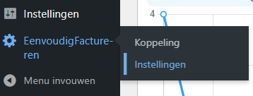 Ga in je WordPress-dashboard naar de instellingen van de EenvoudigFactureren plugin. Hier vind je het overzicht met alle opties voor de WooCommerce-koppeling.
