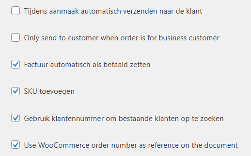 Hier kies je welk type document automatisch wordt aangemaakt voor je WooCommerce-bestellingen: